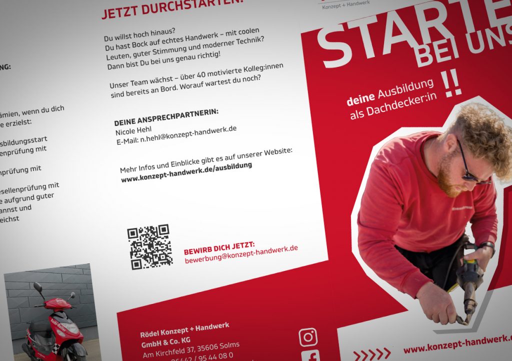 In unserem Flyer findest Du alle wichtigen Informationen über Deine Ausbildung in einem modernen Dachdeckerbetrieb mit über 40 Mitarbeiterinnen und Mitarbeitern. Wir bieten Dir interessante Prämien und Vorteile.